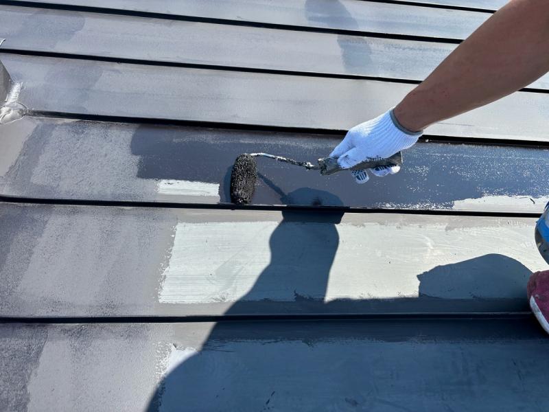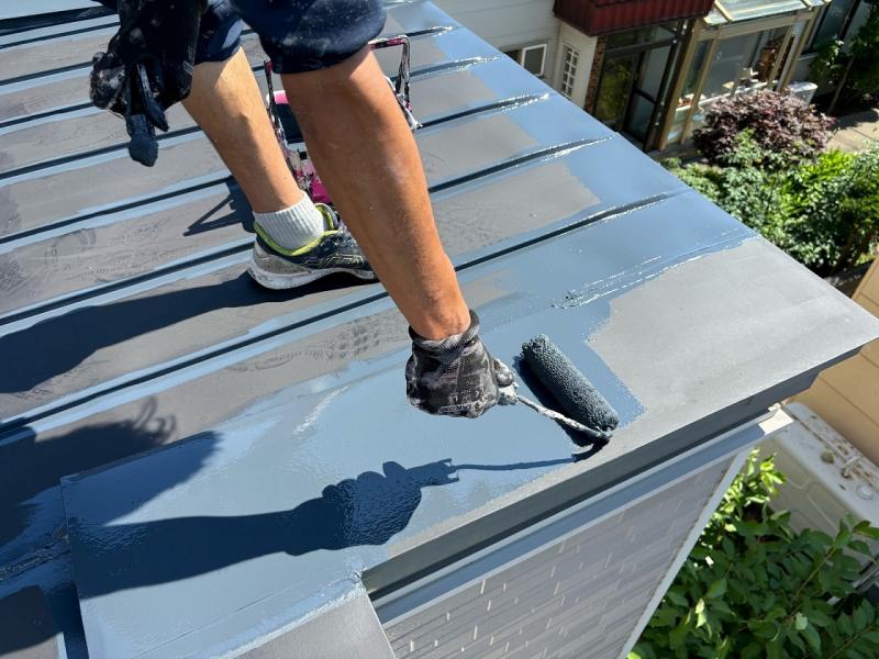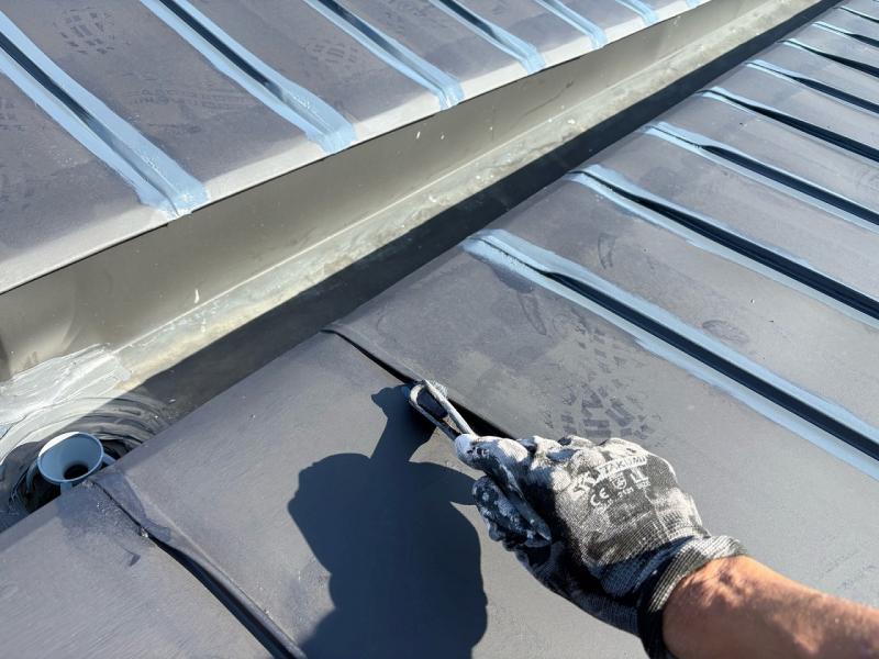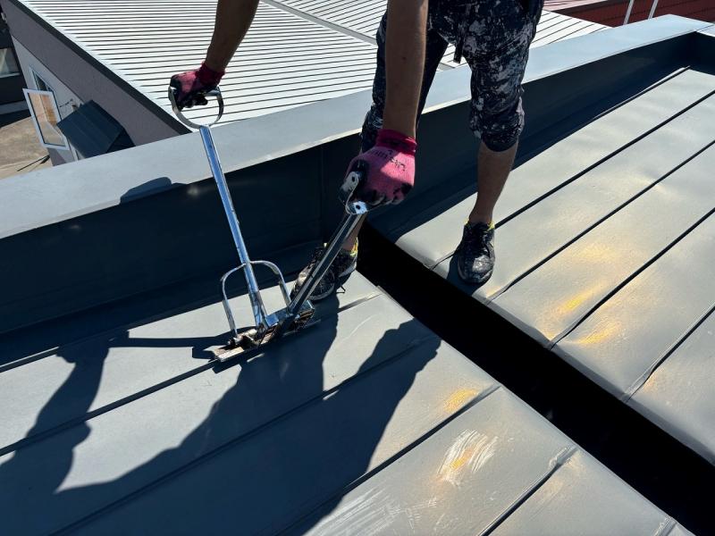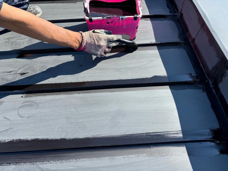 ハゼ(屋根の繋ぎ目)にもしっかり塗料が入っています。