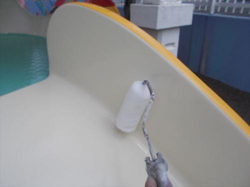 古い塗膜にキズを付けて、新しい塗膜との密着性を高めます。