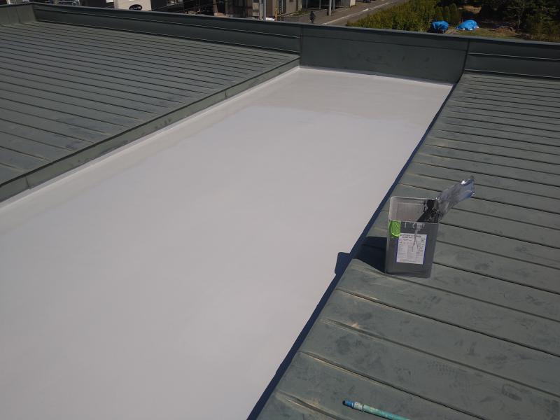 ↓屋根上塗り(1回目)緑色が上塗りの色です。